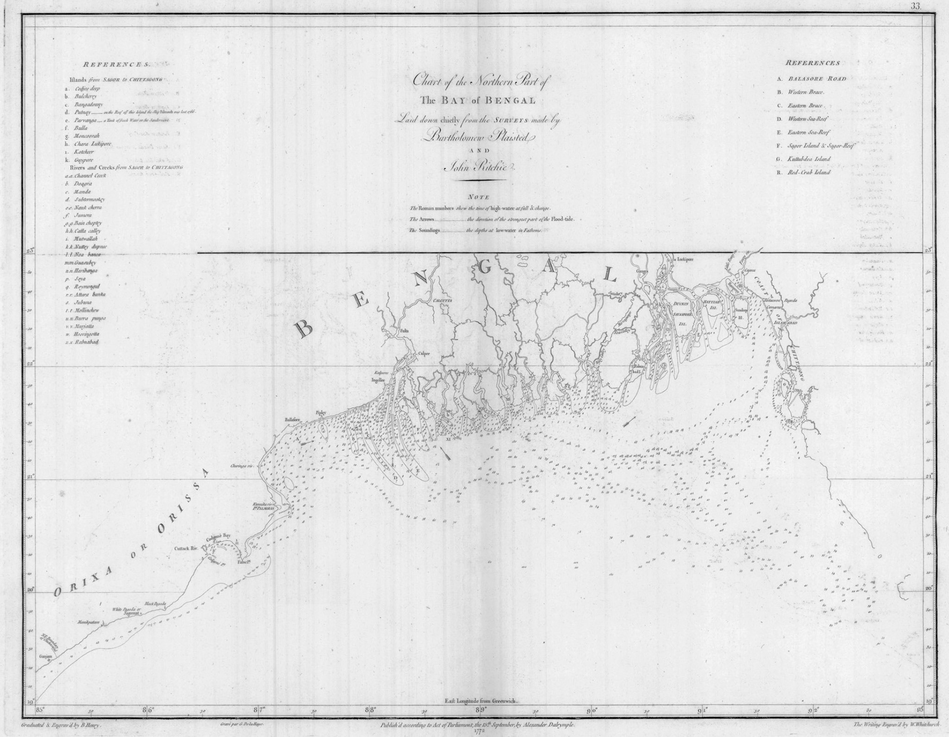 In his 1772 publication “Memoirs of a Chart of the Bay of Bengal”, he writes: “It must appear very extraordinary, when it is considered how long the Europeans have had an intercourse with Bengal, that there is not hitherto a particular chart of the Bay of Bengal in any language”.